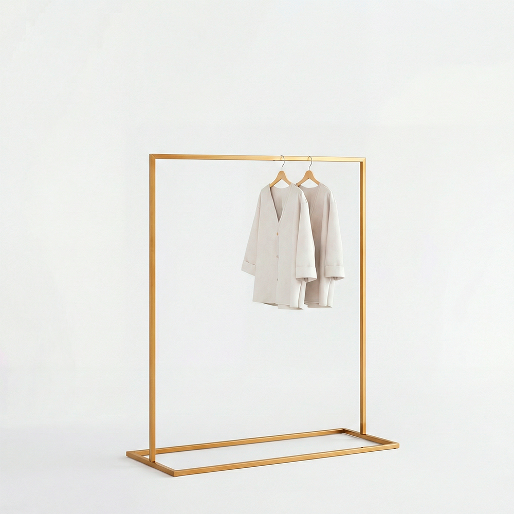 Composta por uma base retangular Slyn e um varão alto de 100cm, a Arara Slyn 100 oferece amplo espaço para pendurar cabides lado a lado. Com 170cm de altura e 100cm de largura, ela se encaixa perfeitamente em qualquer ponto da loja — junto à parede, em corredores ou como ponto focal de uma seção. A montagem é rápida: basta encaixar o varão na base e está pronto para uso.