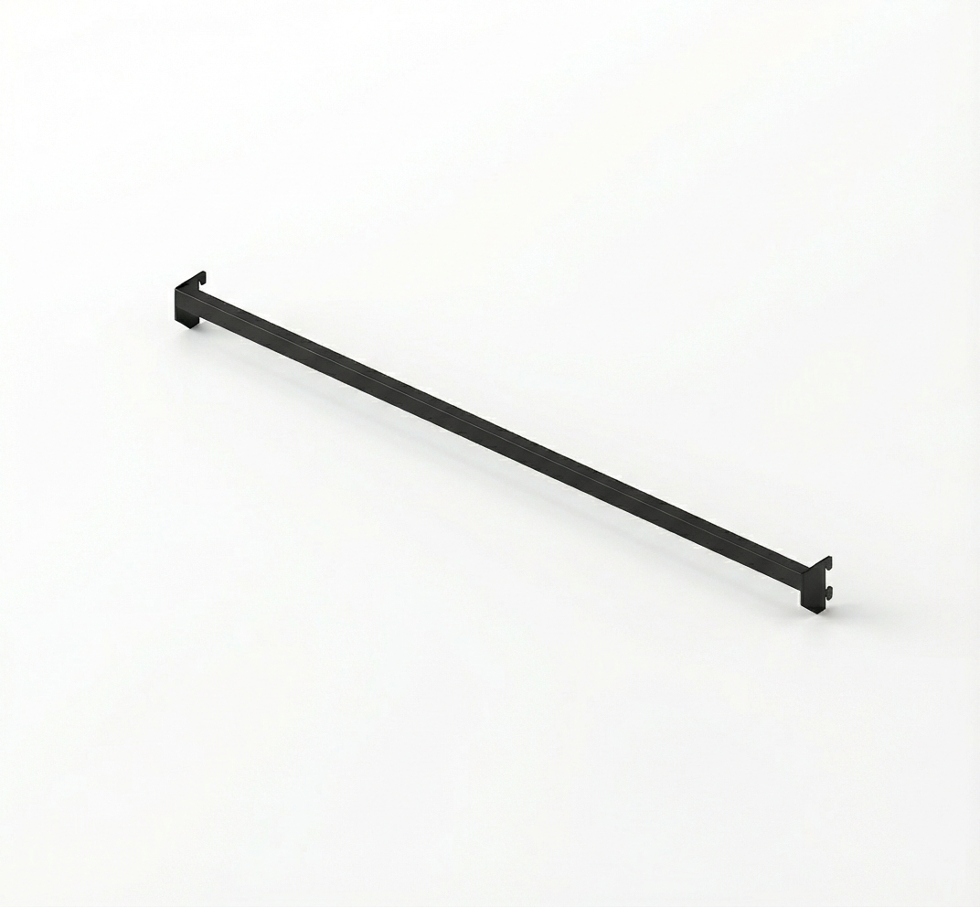 A Régua Reta RG 120 é usada em sistemas de cremalheira quando você precisa de um varão simples entre duas colunas para pendurar roupas em cabides. Com 120cm de vão, é indicada para painéis de parede mais amplos, permitindo uma área maior de exposição contínua entre as colunas.